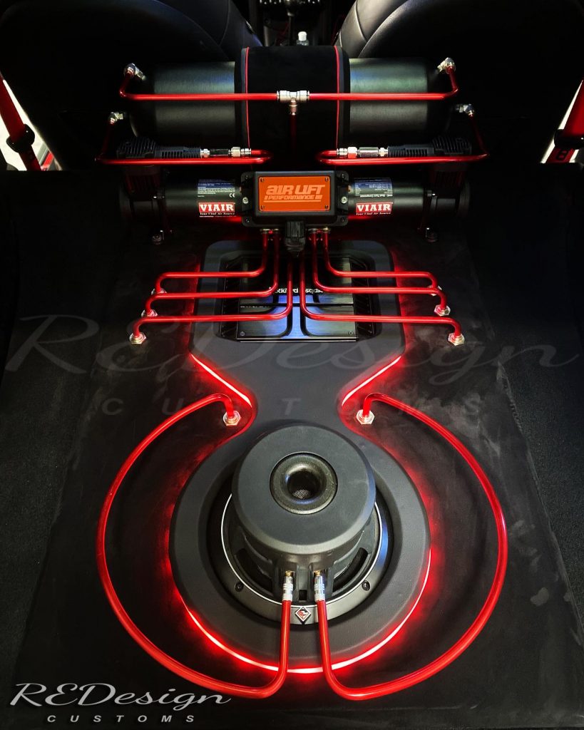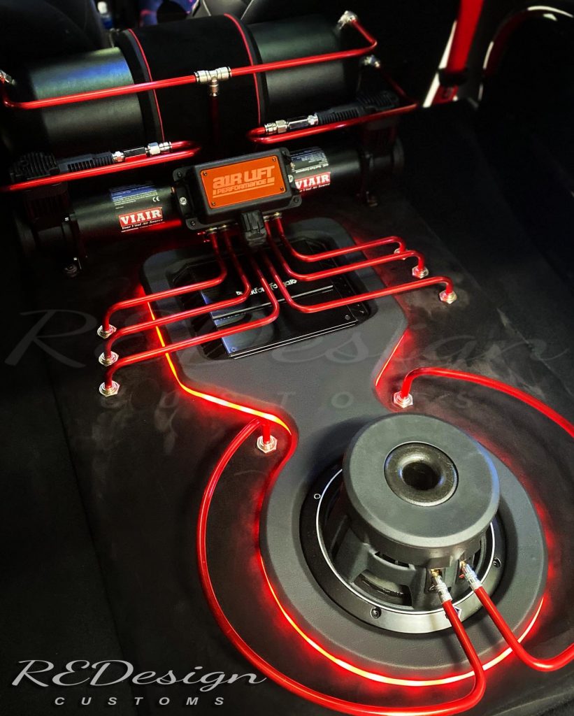 Twin black Viair 444C compressors give the Airlift Performance 3P System all the puff it needs to fill the Airlift Performance Front & Rear performance series struts allowing the driver to slam it to the ground, or cruise effortlessly over the naughtiest obstacle britain’s roads can throw at him. The Performance series struts also feature a 30-level adjustable damping meaning just by twisting the knob, the ride can be stiffened up in preparation to send it round a track, or soften it for a more comfortable daily ride.